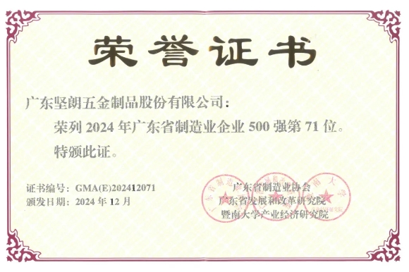 97¹ú¼ÊÎå½ðÈÙÁС°2024Äê¹ã¶«Ê¡ÖÆÔìÒµÆóÒµ500Ç¿µÚ71λ¡±¡£